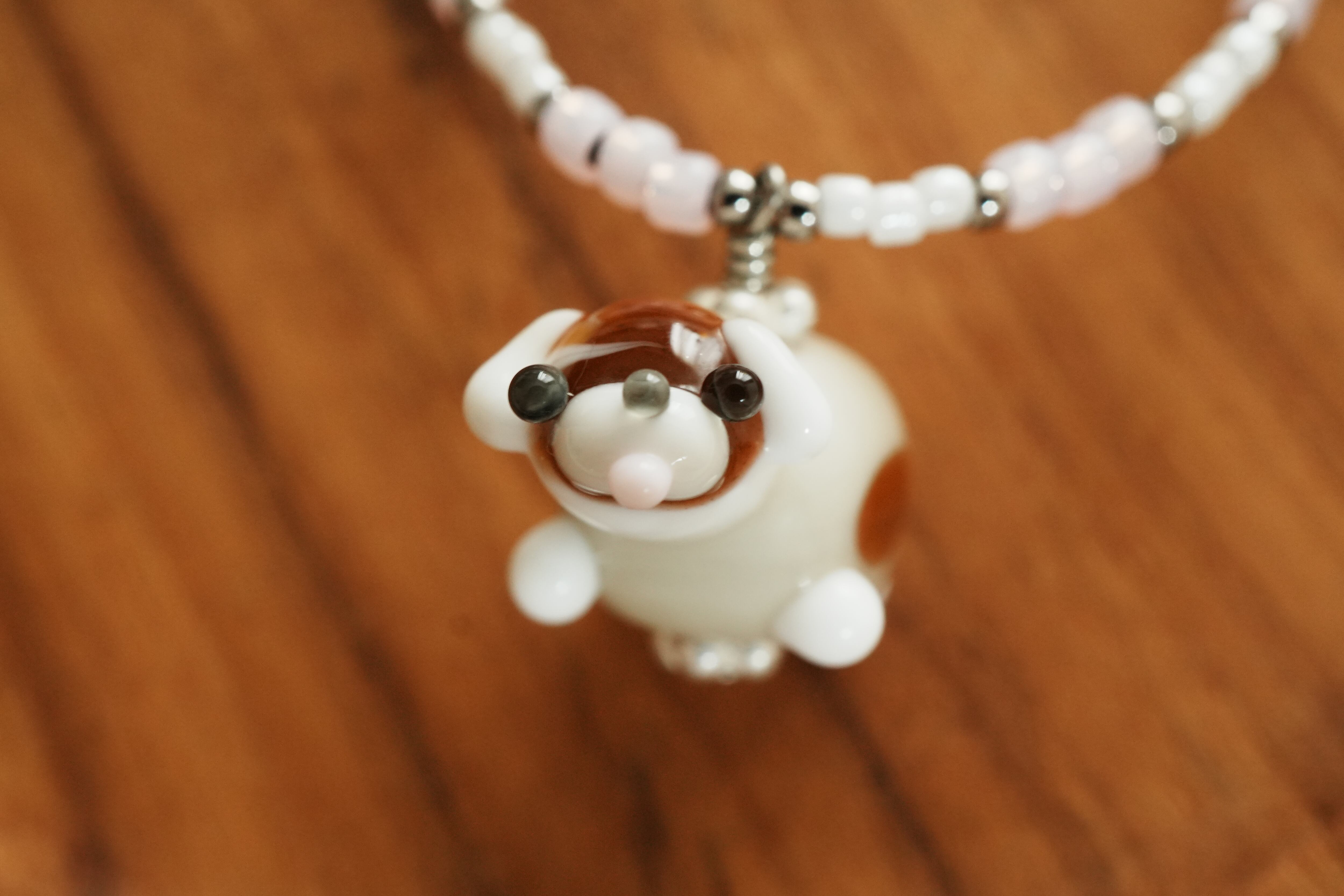 ガラスいーぬネックレス 白茶